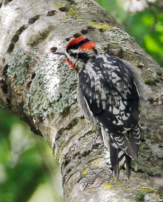 better. Male Yellow-bellieds can be hard to distinguish from the male Red-naped, as a few of them (not this one) also show red in the nape. The red throat of the Yellow-bellied male has a complete black border, visible here, where on the Red-naped the red is more extensive and the border is incomplete. |